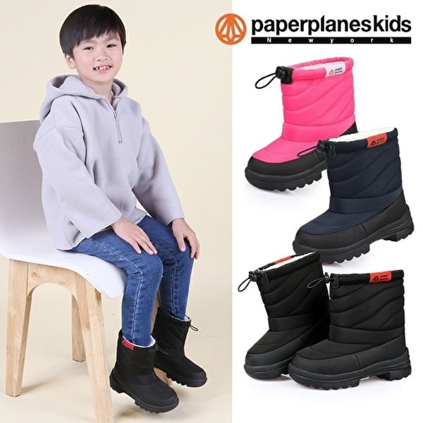[페이퍼플레인키즈]아동 겨울 패딩 부츠 유아 털 신발 키즈 방한 워커 보온 앵클 첼시 기모 가죽