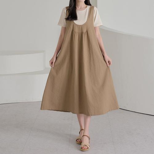 [로즈미] [55~77] 하엘 린넨 멜빵 원피스