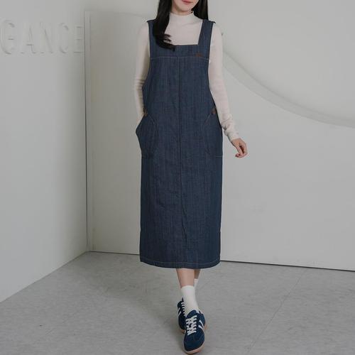 [로즈미] [55~77] 세노 포켓 데님 멜빵 원피스