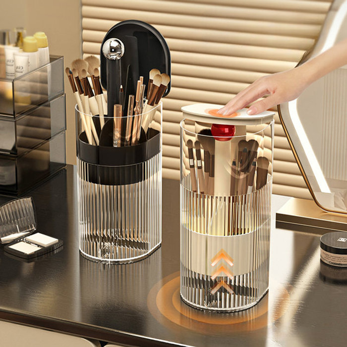 토마톰스 [토마]투명 원터치 화장품 브러쉬 정리 보관함/펜슬 립스틱 보관 브러쉬 꽂이 케이스 수납함(CN218)