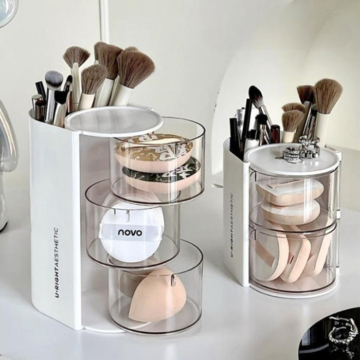 토마톰스 [토마]2단 화장품 정리함 브러쉬 퍼프 펜슬 립스틱 보관 수납함 꽂이 케이스(CN216)