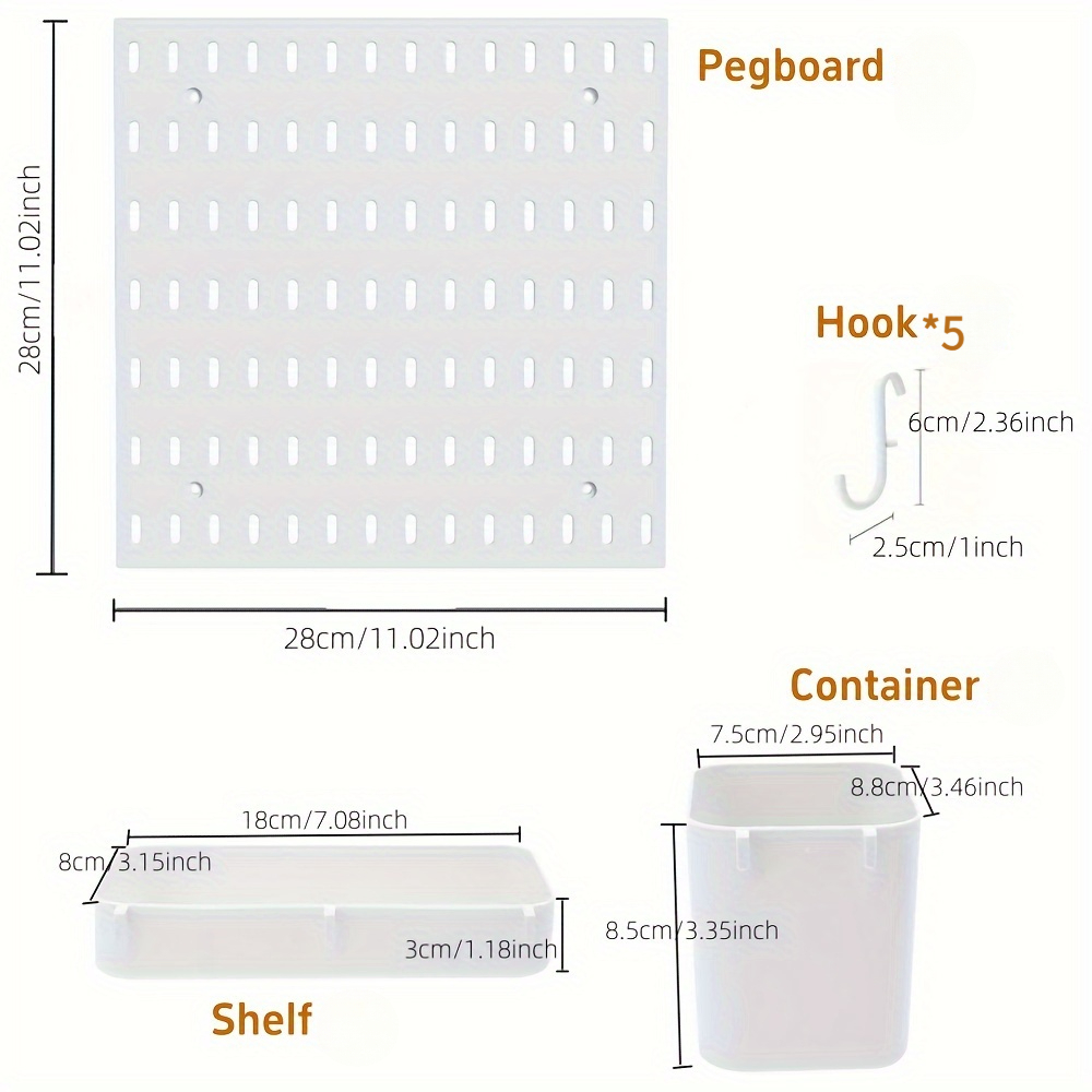 TEMU 8개 페그보드 벽면 정리 세트 | 다기능 화이트 디스플레이 보드 (후크, 수납 선반, 컨테이너 포함) - 주방, 거실, 욕실, 사무실, 다용도 랙에 적합