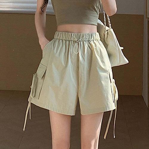 [셀럽하우스]포켓 EENV5108 스트링 포인트 여성 쿨링 팬츠 편한 밴딩 반바지