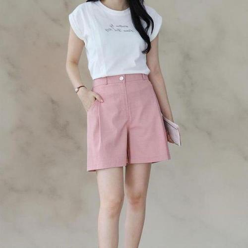 [다잇템][다잇템] 여자 분홍숏팬츠 핀턱 백밴딩 SS 편한 넓은 반바지_22388245_588872