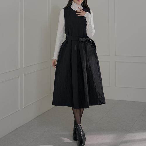 [로즈미] [55~77] 포그 벨티드 레이어드 퀄팅 원피스