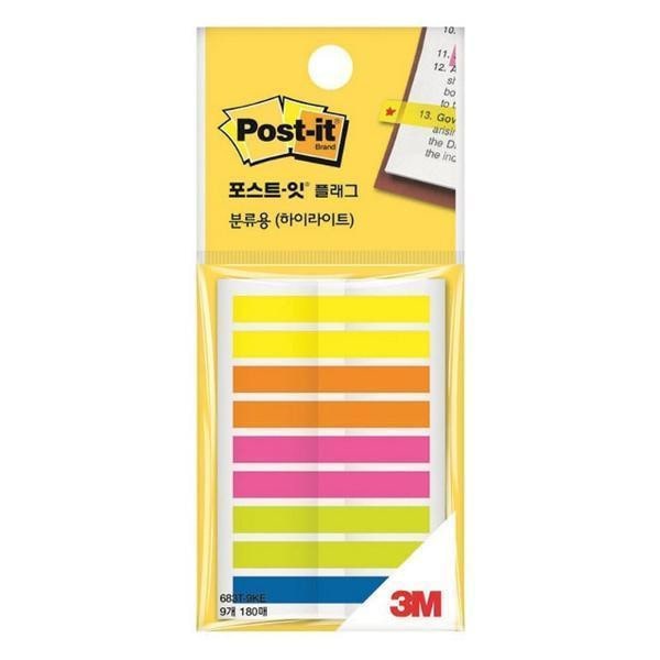 3M 포스트잇 플래그 9색 683T-9KE 하이라이트 갑(20개입)