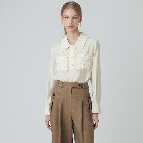 [샤틴]레이스 배색 포인트 블라우스/S243M258_C
