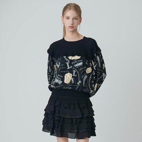 [샤틴]니트 배색 포인트 블라우스/S243B956_C