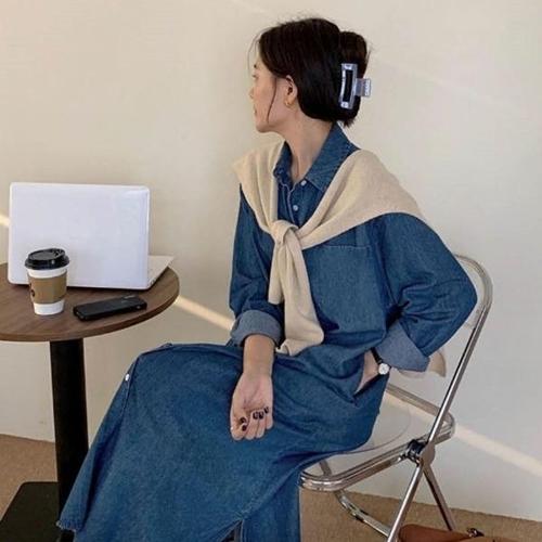 [엄지척]카라 데님 롱기장 포켓 긴팔 원피스 남방 간절기 패션_19660515_667501