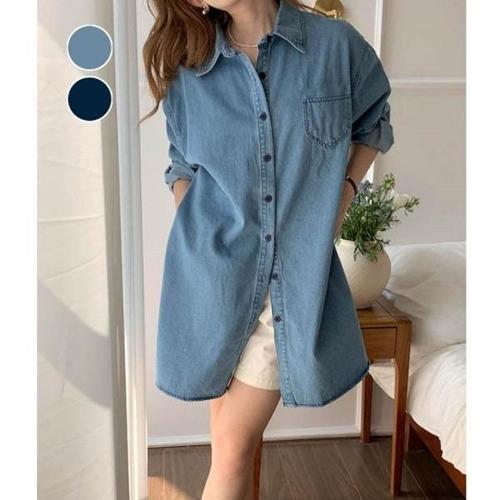 [엄지척]여성 포켓 포인트 롱셔츠 데님셔츠 데님 미니 원피스_19870980_667501