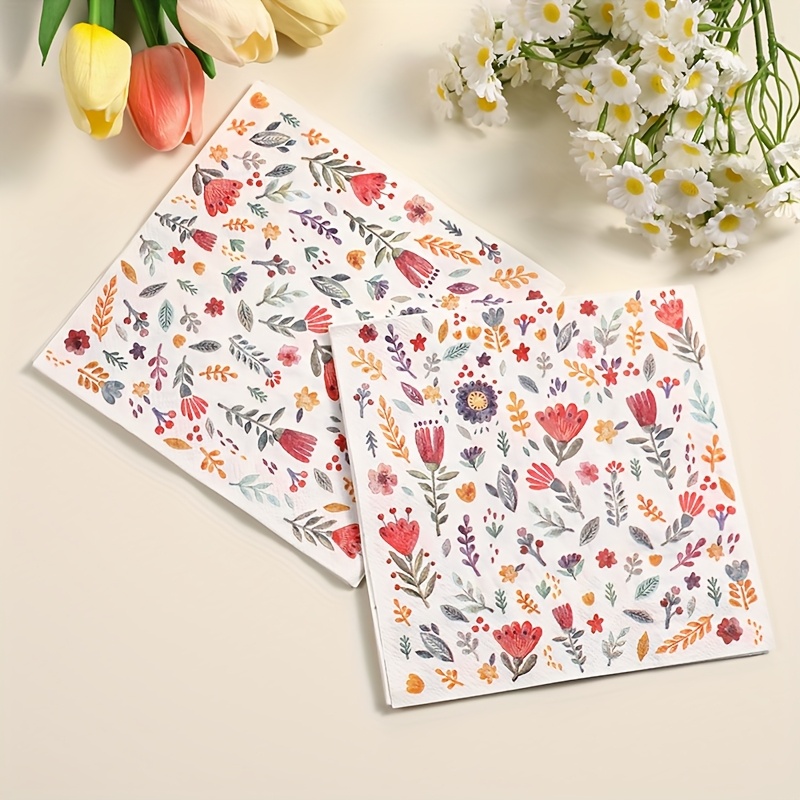 TEMU 33*33Cm 이중 레이어 컬러풀 작은 꽃과 풀 프린트 페이퍼 타월 일회용 이중 레이어 컬러풀 냅킨 야외 파티 페이퍼 타월 파티 냅킨 가족 주방 냅킨 칵테일 냅킨 생일 파티 장식 서양 레스토랑 냅킨
