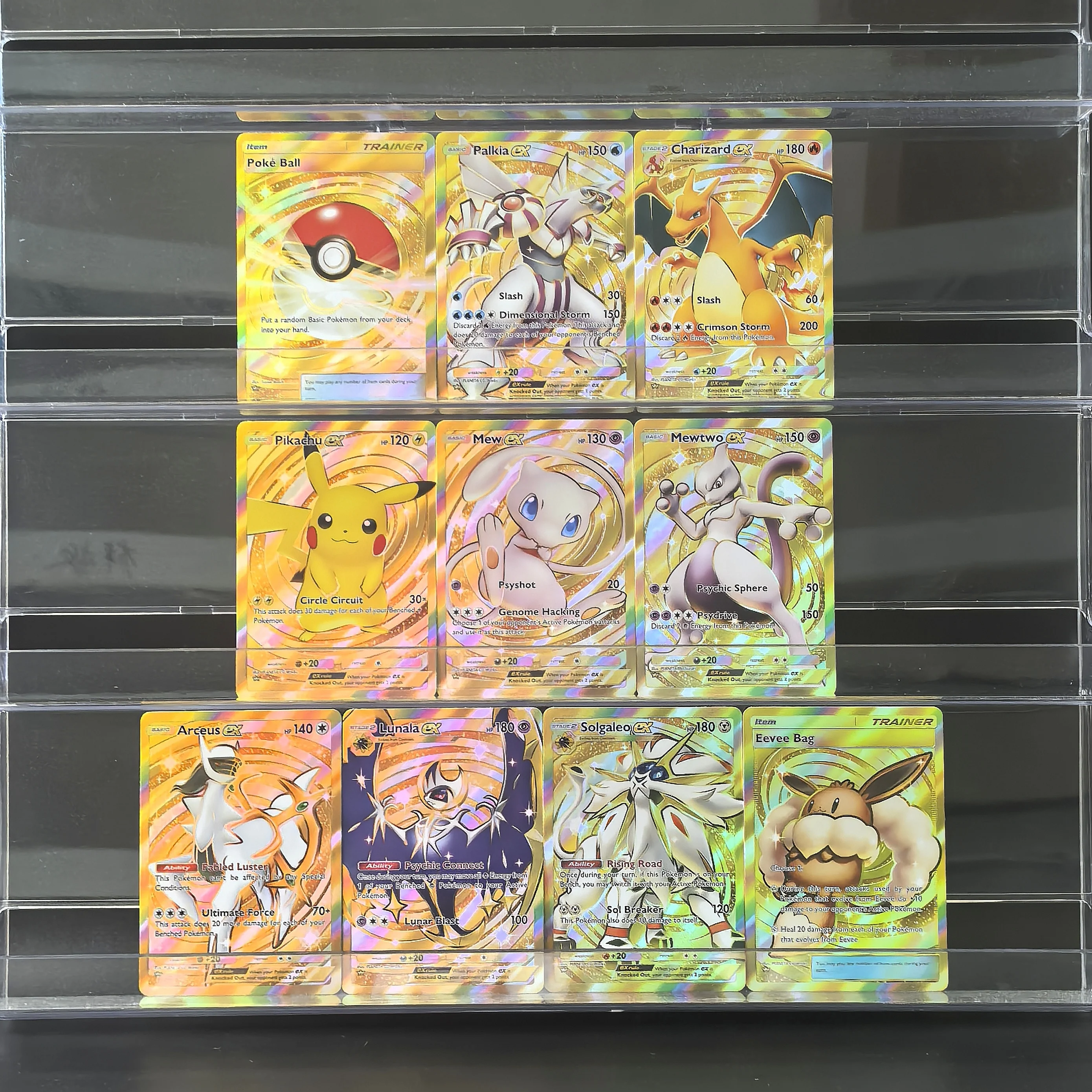 10Pcs 포켓몬 컬렉션 카드 포켓 게임 포케 볼 Charizard Pikachu Mewtwo Eevee Lunala 클래식 게임 애니메이션 카드 선물 완구