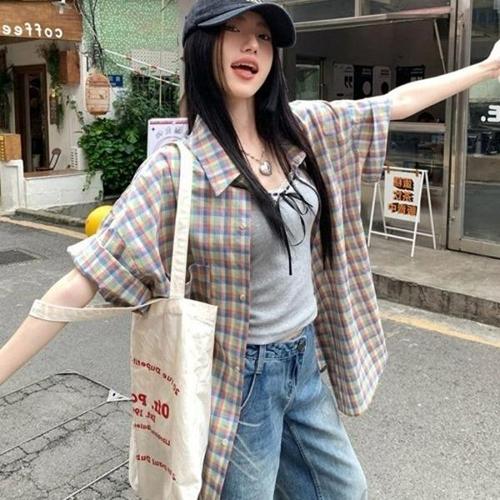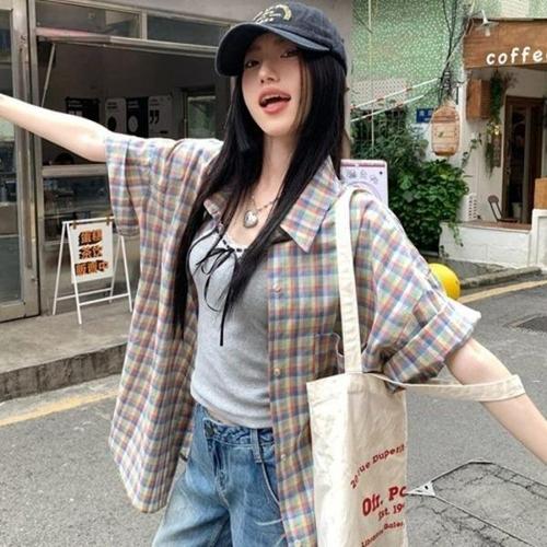 [엄지척]체크 포켓 캐쥬얼 패션 아이템 박시핏 반팔 셔츠_19651231_667501