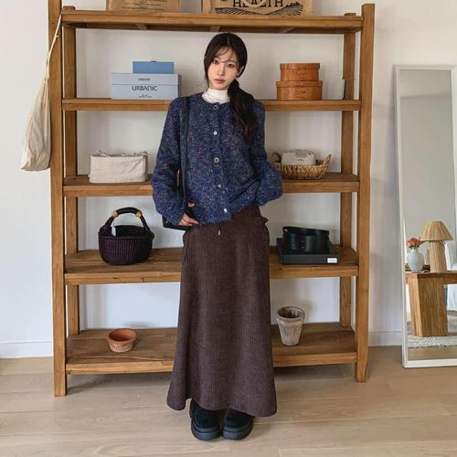 [시크블랙]버터비 코듀로이 만두 포켓 밴딩 롱 스커트
