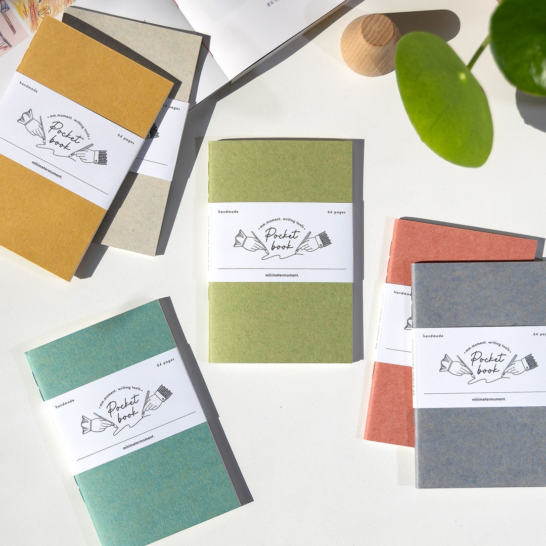사용하기 쉬운 펜이 꽂혀있는 미니 수첩 포켓 노트 다이어리