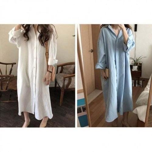 [셀럽하우스]셔츠원피스 KXWE4094 여자원피스 캐주얼 긴팔 옆포켓 롱 남방스