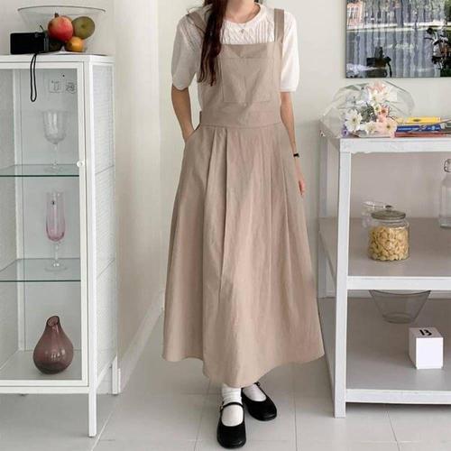여름 원피스 멜빵 휴양지 트위드 포켓 롱 셔츠 WFKOIKK