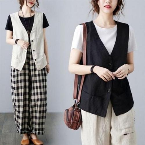 [엄지척]은창)페이크 포켓 윈터 린넨 라인 따뜻 혼방 조끼 여_19874349_667501