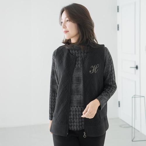 엄마옷 마담4060 H비즈꽈배기포켓조끼-QVE2511004-
