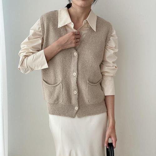 [기타브랜드]여자 니트조끼 포켓 버튼 니트 베스트 부드럽고 내추럴한 데일리룩
