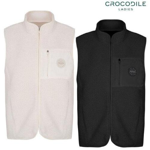 [크로커다일레이디](CLDWPF201) 우븐 배색 포켓 폴라 플리스 베스트_GN