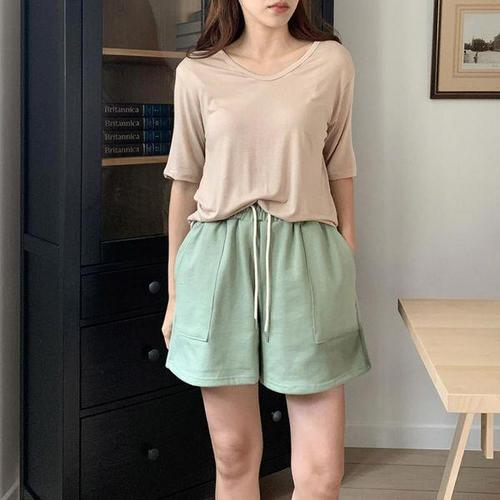 [옷자락]여자 면혼방 허리스트링 아웃포켓 밴딩 반바지
