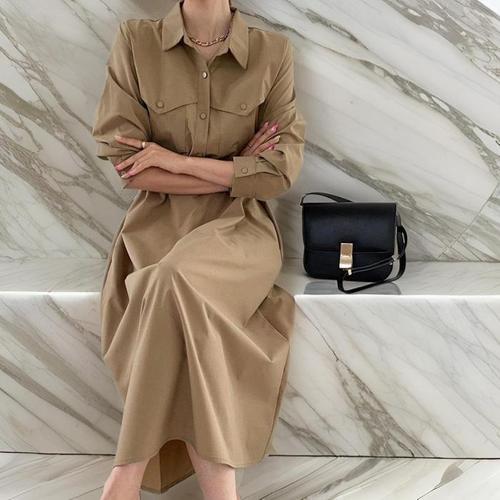 [옷자락]여자 롱 정장핏 허리스트링 더블포켓 원피스