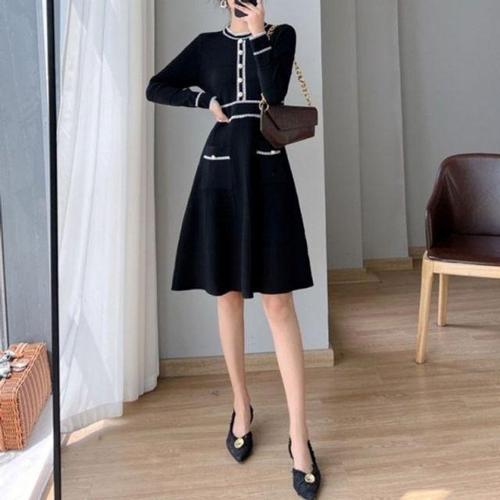 [셀럽하우스]무드있는 HTID8467 가을코디 니트원피 미니원피스 진주버튼포인