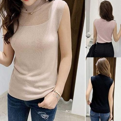 여름 니트티 민소매 폴라 골지 슬림 목폴 목 WFLQAG0