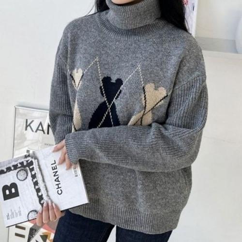 [엄지척]뽀얌 여자 데일리 베어 아가일 목폴라 니트_19680158_667501