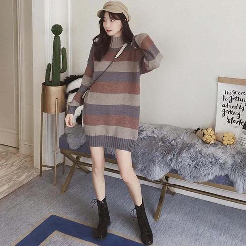 [셀럽하우스]목 RYXE4432 배색 폴라 롱니트 원피스 단가라 니트 터틀넥 롱
