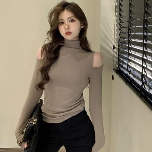 여성 봄,가을,겨울 슬림핏 니트 긴팔 원피스 여자 반목폴라 스웨터 긴팔셔츠 원피스