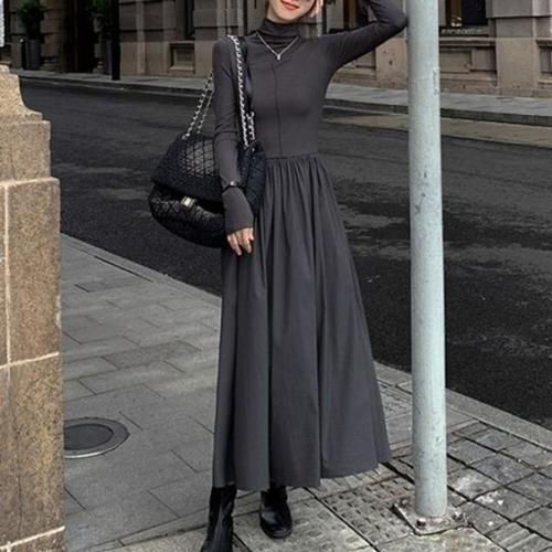 SIS-238 터틀넥니트롱원피스겨울 데일리 긴원피스 폴라 목원피스 짜임 심플 직장인