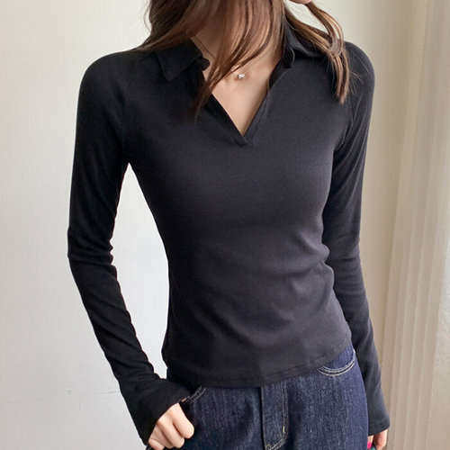 슈팅스타 / V넥 카라 폴로 셔츠 긴 소매 티셔츠 슬림 긴팔 49193052