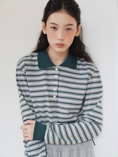 윙드 스트라이프 PK 카라 긴팔 (one color)