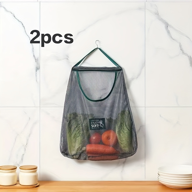 TEMU 2개 세트 메쉬 과일 야채 보관백 - 튼튼한 과일 및 채소 정리용 통기성 메쉬 & 걸이 고리, 벽/캐비닛/샤워실 문 걸이형 마늘, 생강, 허브, 양파 보관용 - 재사용 가능한 주방 팬트리 정리함 (No