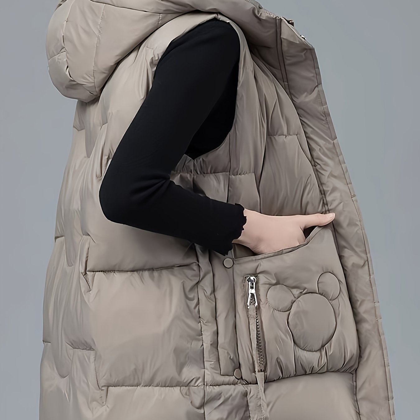 TEMU 새로운 여성용 패딩 베스트 가디건, 루즈한 한국 스타일 미디엄 길이 패딩 코트 아우터웨어