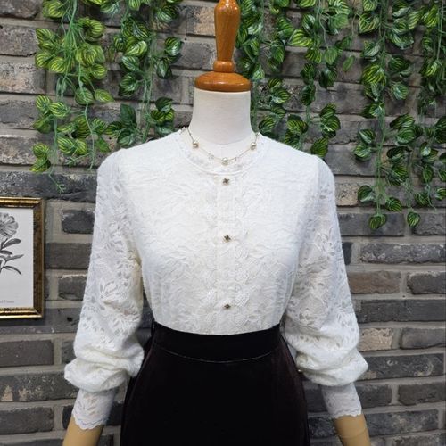 퐁당 / 기모 스판 단추 장식 레이스 블라우스