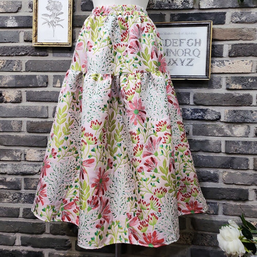 퐁당 / 페미닌 플라워 자가드 A라인 밴딩 스커트