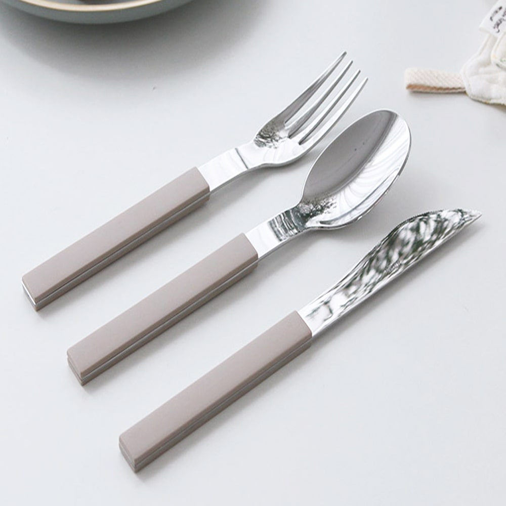 TEMU 3pcs 스테인리스 스푼과 포크 세트 - 휴대용 야외 식기, 홈용 디저트 스푼 & 과일 포크