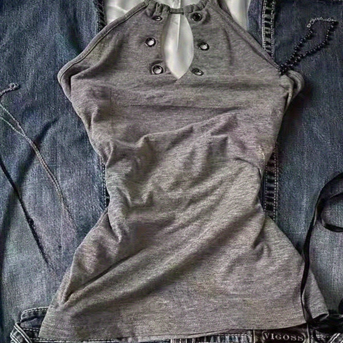 TEMU Y2K 여성용 민소매 홀터넥 탑 조절 가능한 타이 - 회색 캐주얼 시크 셔츠, 세탁기 사용 가능 사계절 레이어링 피스, 다용도 의류, 부드러운 원단, 심플한 디자인, 일상복, 편안한 착용감, 스타일리시 블라우스, 패션 애호가용