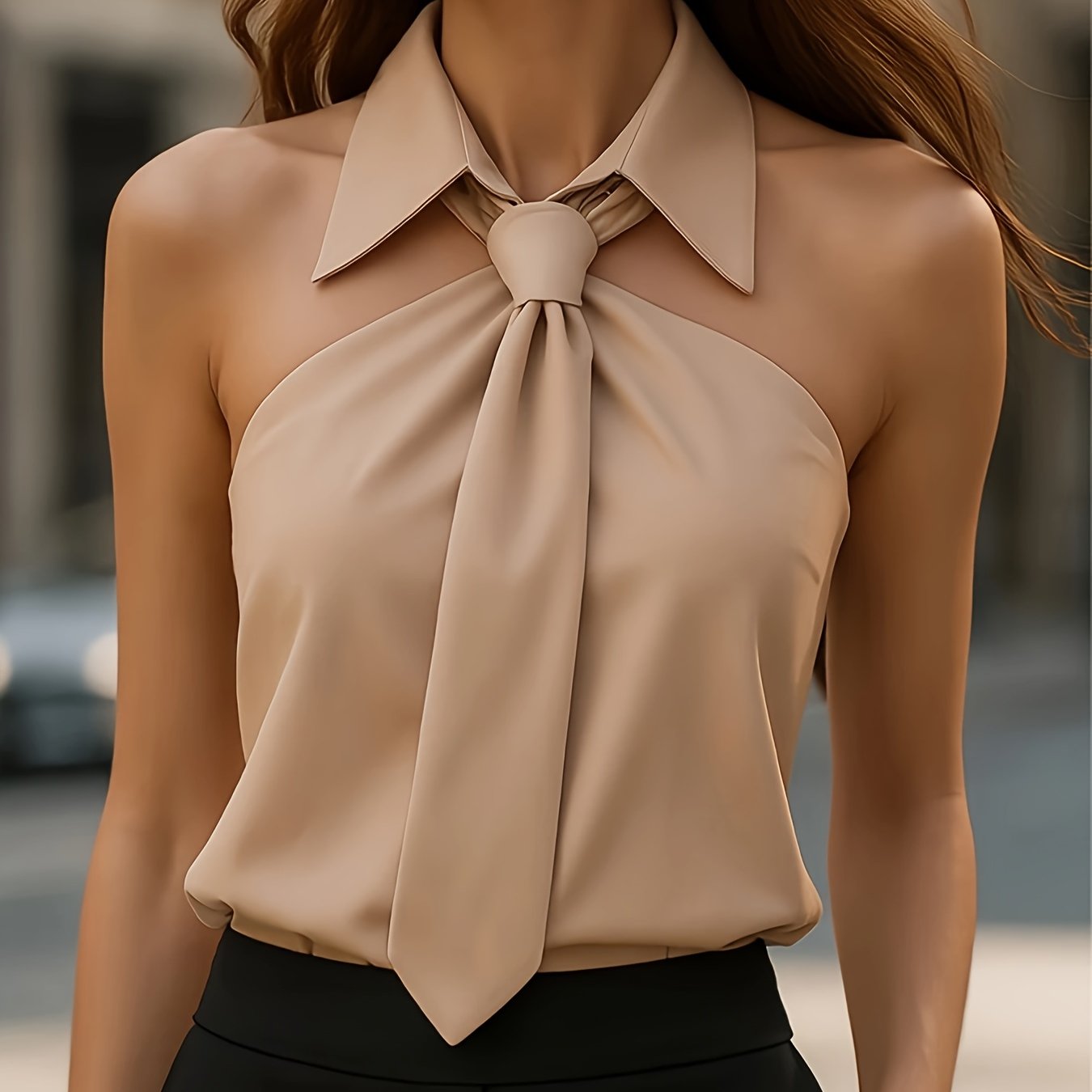 TEMU 여성용 솔리드 컬러 라펠 칼라 민소매 셔츠 - 솔리드, 솔리드, 솔리드 컬러 | 블라우스용 라펠, 세탁기 사용 가능한 우아한 셔츠, 전문가용, 세미포멀 & 캐주얼 웨어 - 사계절 활용 가능한 탑