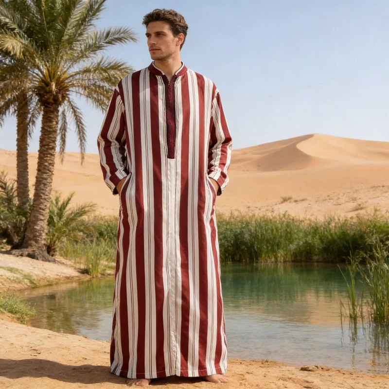 2026 유행하는 캐주얼 민족 의류 가을 신상 컬러 블록 스트라이프 롱 무슬림 로브 후디
