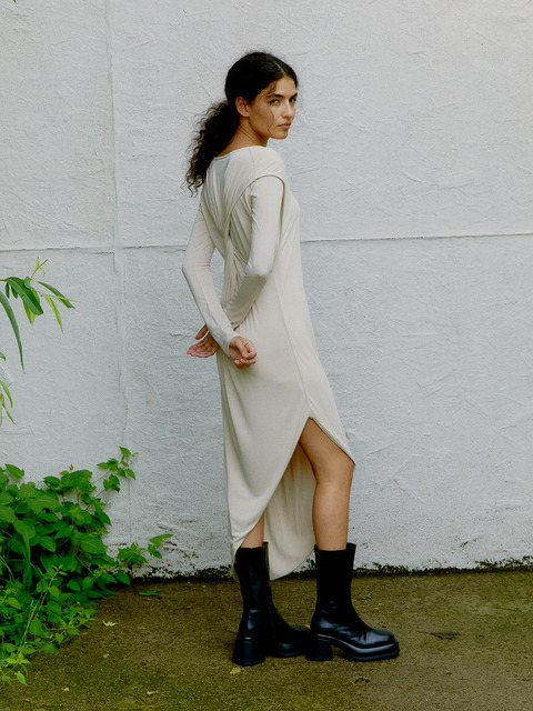 [프로보] 언발란스 뒷 꼬임 원피스 / 베이지