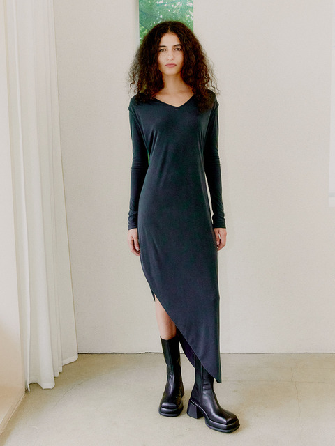 [프로보] 언발란스 뒷 꼬임 원피스 / 그레이