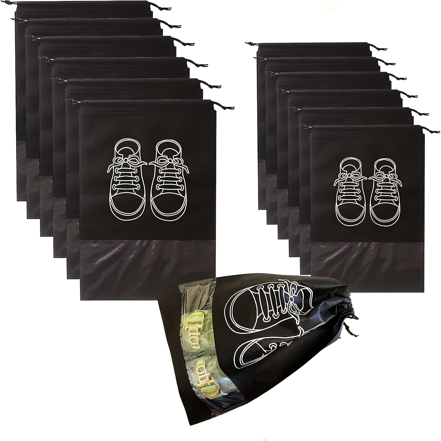 TEMU 10개입 신발 정리백 - 끈 조임식, 신발 그래픽 디자인, 내구성 있는 부직포 소재, 여행 및 헬스용 8가지 색상 옵션, 스포츠 장비 보관용