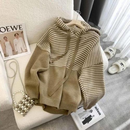 [엄지척]후드 스트라이프 티 니트 캐주얼 FREE 상의_19678912_667501