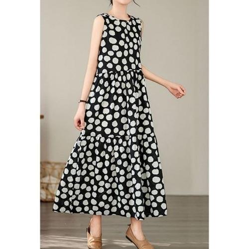 [엄지척]여성 여름 땡땡이 프린트 민소매 나시 면 롱 원피스_19912775_667501