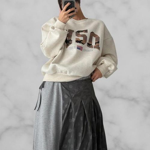 옷자락 / 남녀공용 오버사이즈 프린트 기모 맨투맨 캠퍼스 스타