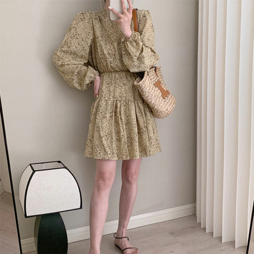 슈팅스타 / 플라워패턴 허리 슬림 A라인 원피스
